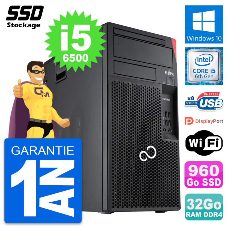 PC Tour Fujitsu Esprimo P557 MT Intel i5-6500 RAM 32Go SSD 960Go Windows 10 Wifi