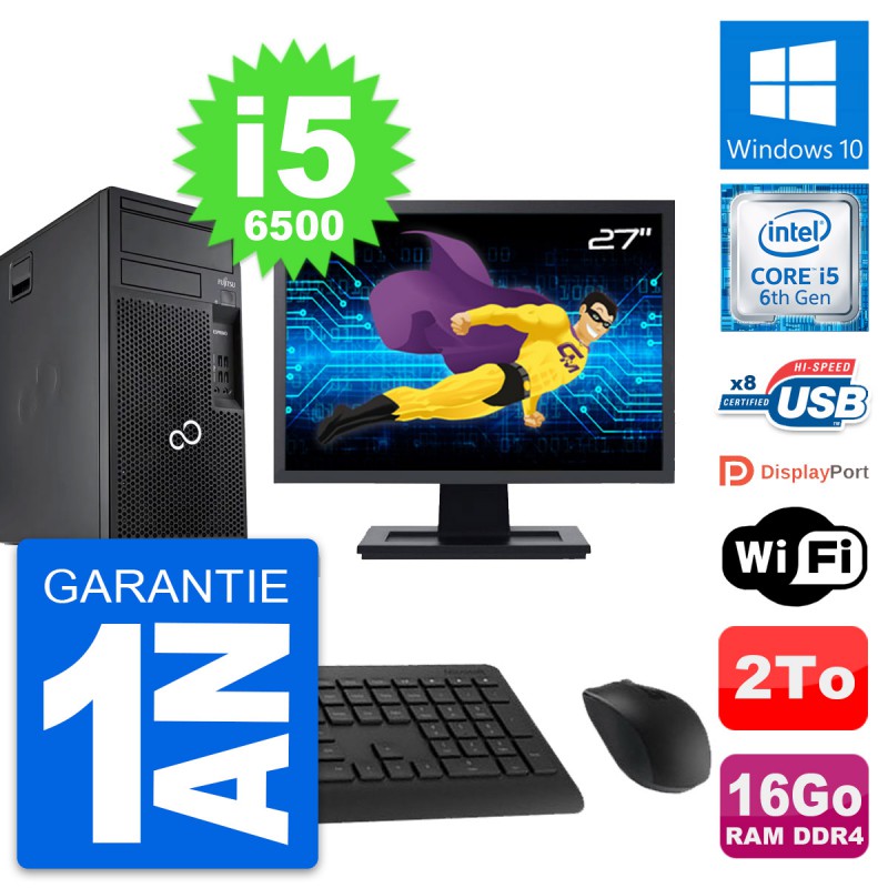 PC Tour Fujitsu Esprimo P557 MT - Intel Core i5-6500 3.2 Ghz (6 Mo) - 16 Go DDR4 - Disque Dur 3,5" 2 To - Clef Wifi USB - Windows 10 - Livré avec Ecran 27" + clavier + souris (Marques et modèles variables) - Garantie 1 an.