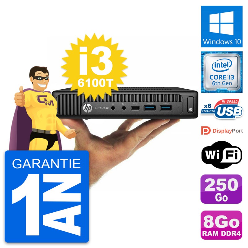 Ultra Mini PC HP 800 G2 DM Intel i3-6100T RAM 8Go Disque 250Go Windows 10 Wifi