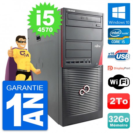 PC Tour Fujitsu Celsius W530 MT - Intel Core i5-4570 3.2 Ghz (6 Mo) - 32 Go DDR3 - Disque Dur 3,5" 2 To - Graveur DVD - Clef Wifi USB - Windows 10 - Garantie 1 an.