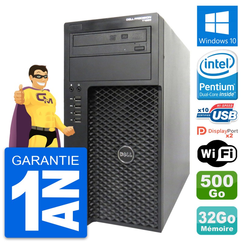 PC Tour Dell Precision T1650 MT - Intel Pentium Dual-Core G2020 2.9 Ghz (3 Mo) - 32 Go DDR3 - Disque Dur 3,5" 500 Go - Graveur DVD - Clef Wifi USB - Windows 10 - Garantie 1 an.