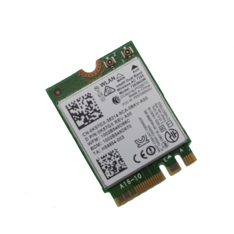 Mini Carte Wifi - Intel - Modèle 7260 NGW - P/N 0GPFNK - Bluetooth 4.0 - Wifi 802.11ac - Double bande - Garantie 6 mois.