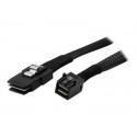 Avec un taux de transfert pouvant atteindre les 12Gbits/s, le câble SAS est particulièrement adapté aux configurations serveurs qui demandent de multiples connexions simultanées. Possibilité de mettre en parallèle jusqu'à 128 HDD / SSD (contre 15 pour une connectique SCSI classique), compatibilité avec la norme SATA ... Bref, le câble SAS est ce qui se fait de mieux en termes de transfert de donnée pour un disque dur. Privilégiez son usage pour les disques rapides (10K tour minutes ou Flash) et compléter avec un câblage en SATA pour les disques plus lents de stockage.