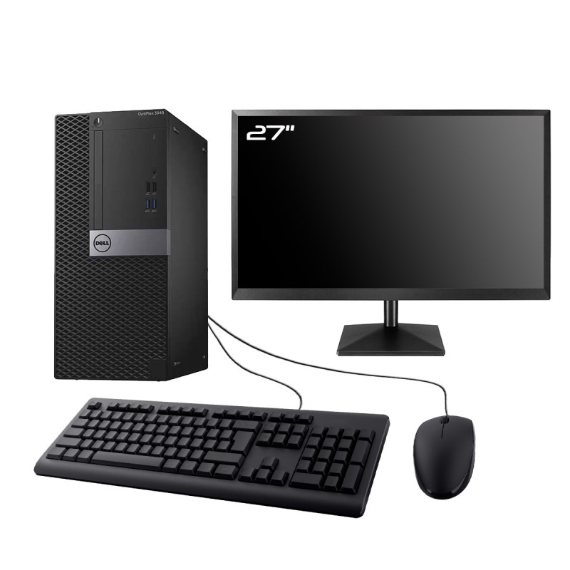 PC Tour Dell OptiPlex 3040 MT - Intel Core i5-6500 3.2 Ghz (6 Mo) - 16 Go DDR3L - SSD 240Go + HDD 2To - GTX 1650 - Clef Wifi USB - Windows 10 - Livré avec Ecran 27" + clavier + souris (Marques et modèles variables) - Garantie 1 an.