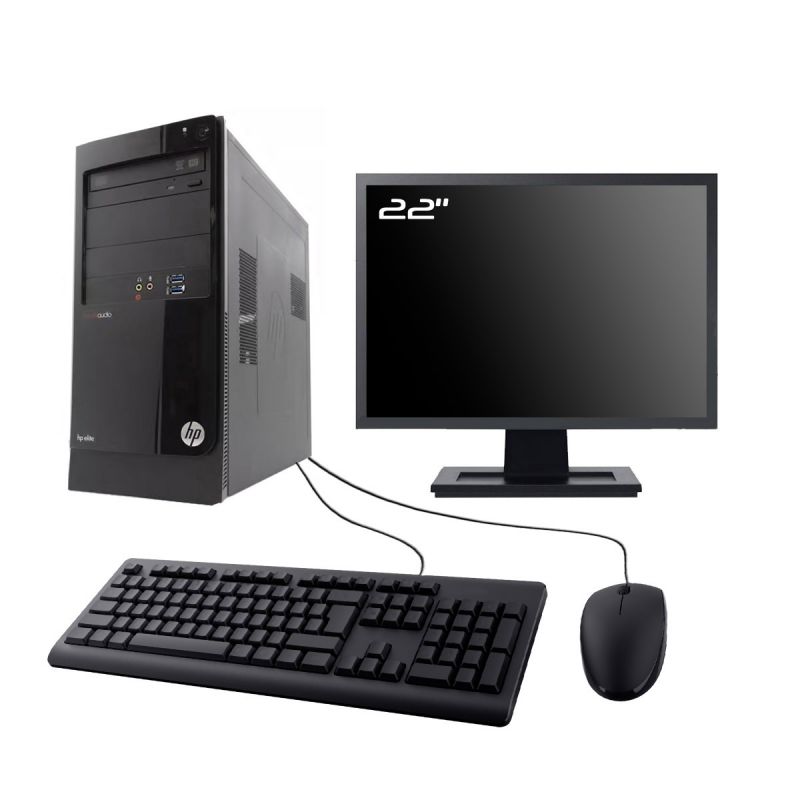 PC HP Elite 7500 Series MT - Intel Core I7-3770 3.4 Ghz (8 Mo) - 16 Go DDR3 - SSD 240 Go - Lecteur DVD - Cle USB Wifi - Windows 10 - Pack Clavier + Souris + Ecran 22" (Marque et modèle selon arrivages). - Garantie 12 MOIS.