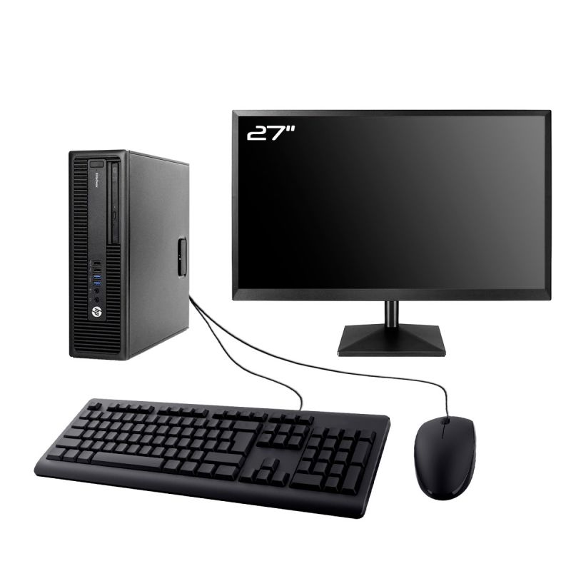 PC HP EliteDesk 705 G3 SFF Ecran 27" AMD AMD A6-8570 RAM 8Go HDD 500Go W10 Wifi