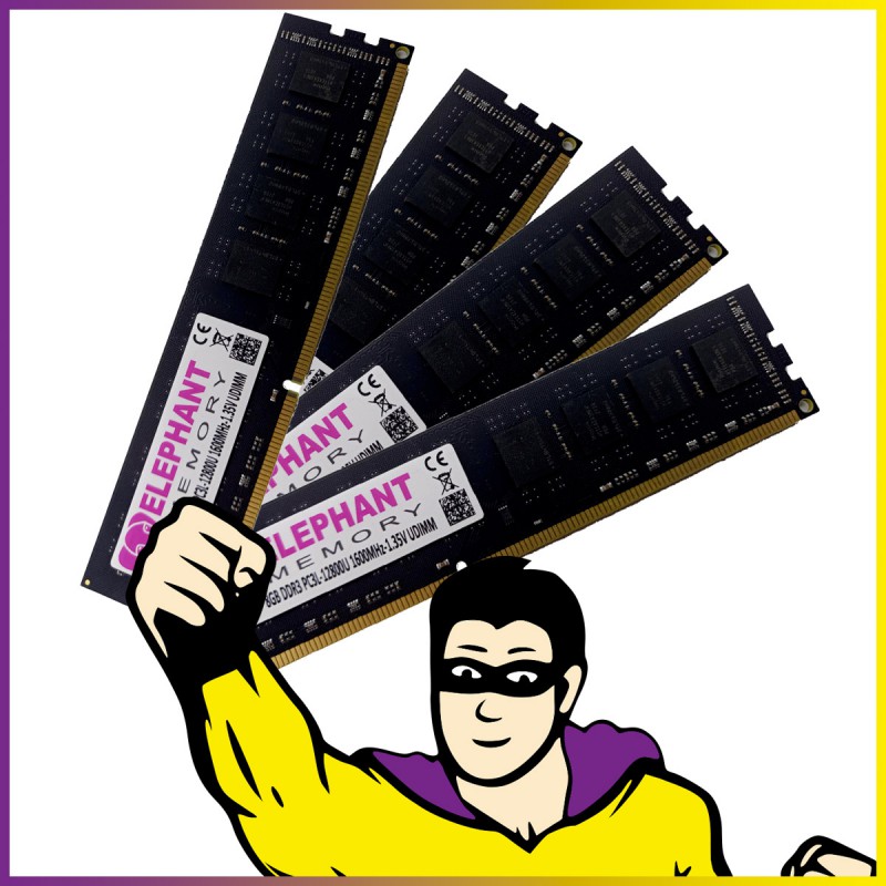Lot de 4 Modules Mémoires RAM pour PC de Bureau - Elephant Memory - 4x8Go (32 Go) - 1600Mhz - PC3L-12800U - Double Face - 1.35v - Garantie 12 Mois.