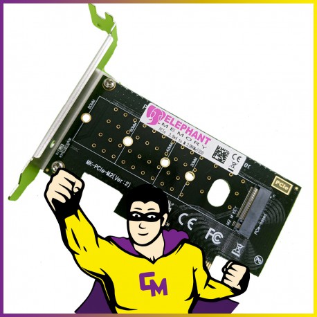 Carte adaptateur PCIe vers M2 (NVME) SSD - Elephant Memory - PCI Express 3.0 x4 - Low et High Profile - Garantie 12 mois
