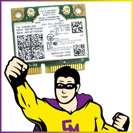 Mini Carte Wifi - Intel / Lenovo - Modèle Wireless-N 7260HMW - P/N 04X6011 - Bluetooth 4.0 - Wifi 802.11 n - Garantie 12 mois.