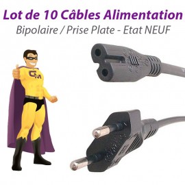 DisponibleLot de 10 Câbles Cordons Alimentation Secteur pour PC / Mac / Portable - Bipolaires / Prise Plate - Etat NEUF - Garantie 12 moisLot de 10 Câbles Cordons Alimentation...