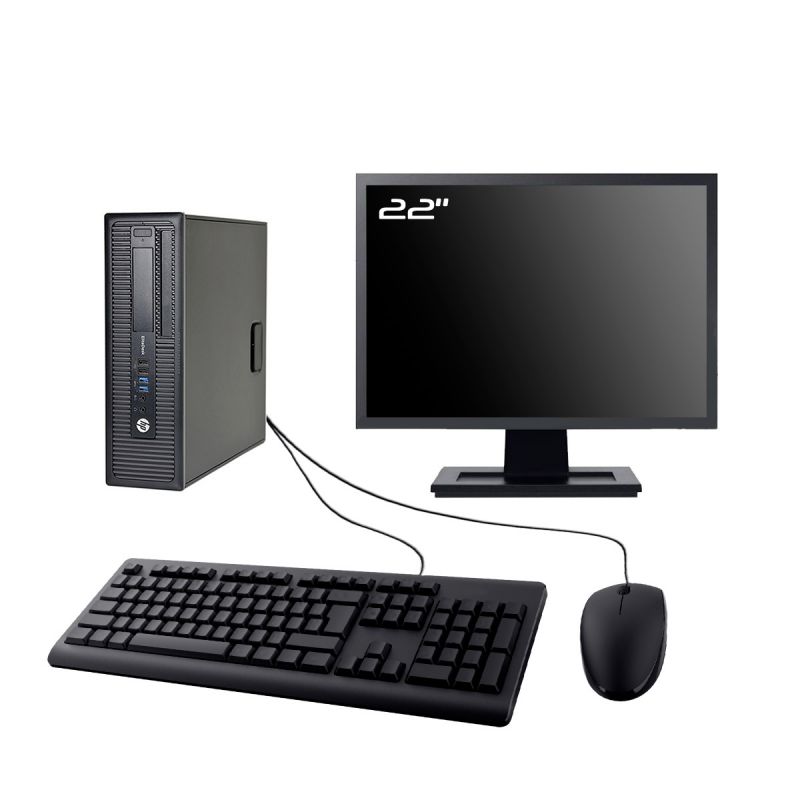 PC HP EliteDesk 800 G1 SFF Ecran 22" Intel I5-4570 RAM 16Go SSD 480Go W11 Wifi