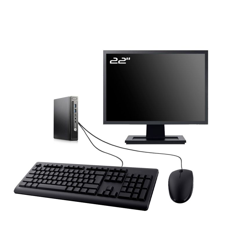 PC HP EliteDesk 800 G2 DM - Intel Core I7-6700T 2.8 Ghz (8 Mo) - 16 Go DDR4 - SDD 240 Go - Sans lecteur optique - Cle USB Wifi - Windows 11 - Pack Clavier + Souris + Ecran 22" (Marque et modèle selon arrivages). - Garantie 12 MOIS.
