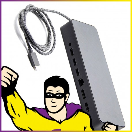 Hub d'accueil HP Universel pour PC - Modèle HSA-B005DS - P/N 925698-001 / 935326-001 - 1x USB 3.0 - 3x USB 2.0 - 1x USB-C - 1x Port Ethernet RJ-45 - 2x DisplayPort - 1x Jack Micro/Casque combiné - Garantie 12 Mois.