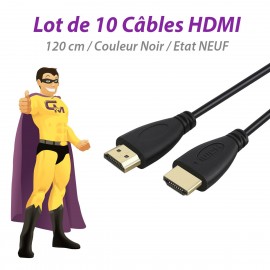 DisponibleLot x10 Câbles/Cordons HDMI pour Ecrans/Moniteurs, PC ou Vidéoprojecteurs - HDMI Mâle vers HDMI Mâle - Longueur 1.2m - Garantie 12 mois.Lot x10 Câbles/Cordons HDMI pour...