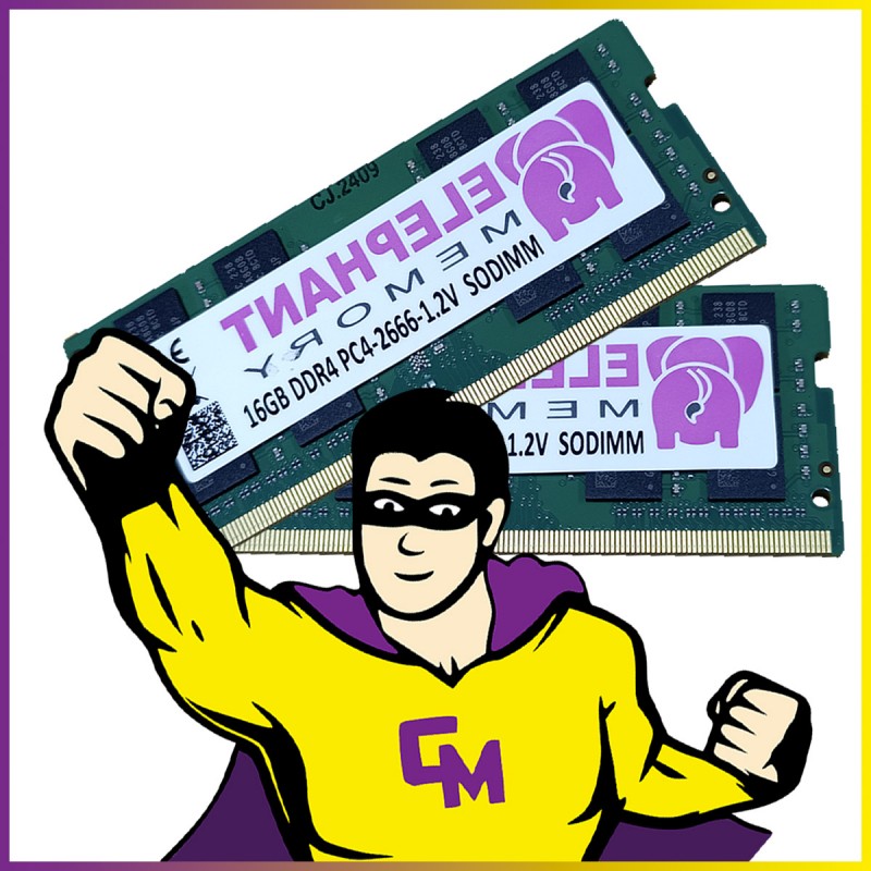 Lot de 2 Modules Mémoires RAM pour PC Portable ou Micro PC - Elephant Memory - 2x 16Go - 2666 Mhz - PC4-21333 - Double Face - 1.2v - Garantie 12 Mois.