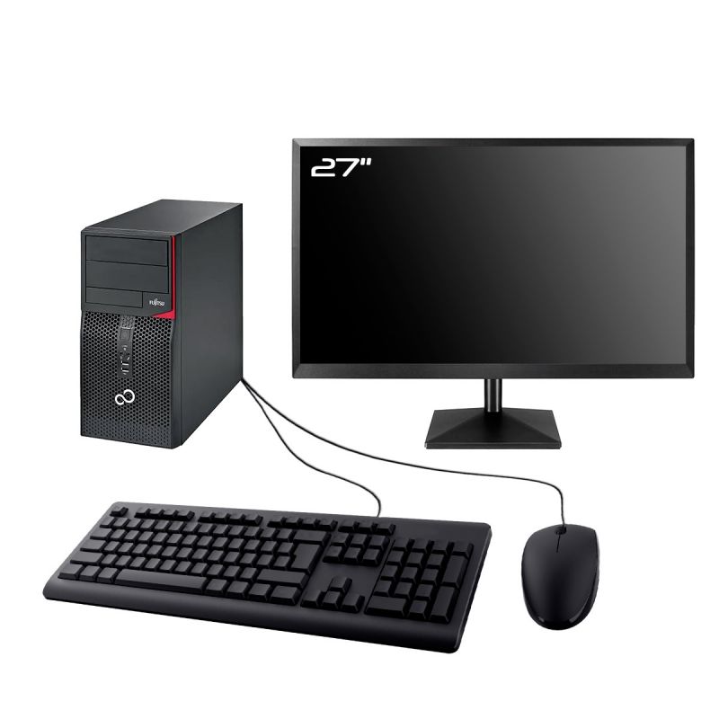 PC Fujitsu P556 Tour - Intel Core I7-6700 3.4 Ghz (8 Mo) - 32 Go DDR4 - SSD 240 Go - Sans lecteur optique - Cle USB Wifi - Windows 11 - Pack Clavier + Souris + Ecran 27" (Marque et modèle selon arrivages). - Garantie 12 MOIS.