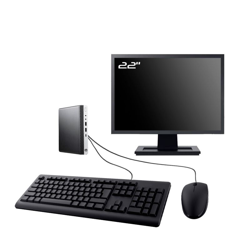 PC HP EliteDesk 800 G5 DM - Intel Core I3-8100T 3.1 Ghz (6 Mo) - 16 Go DDR4 - SSD 480 Go - Sans lecteur optique - Cle USB Wifi - Windows 11 - Pack Clavier + Souris + Ecran 22" (Marque et modèle selon arrivages). - Garantie 12 MOIS.