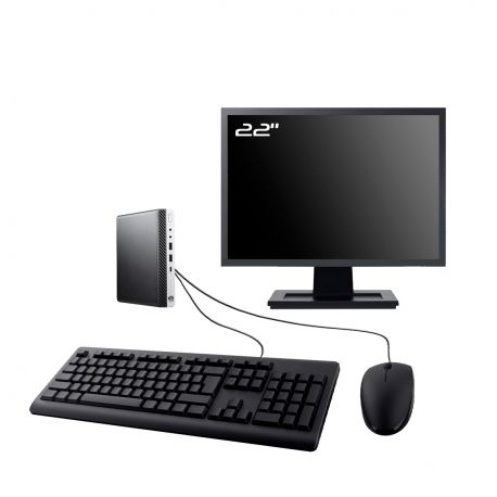 PC HP EliteDesk 800 G5 DM - Intel Core I3-8100T 3.1 Ghz (6 Mo) - 16 Go DDR4 - SSD 4 To - Sans lecteur optique - Cle USB Wifi - Windows 11 - Pack Clavier + Souris + Ecran 22" (Marque et modèle selon arrivages). - Garantie 12 MOIS.