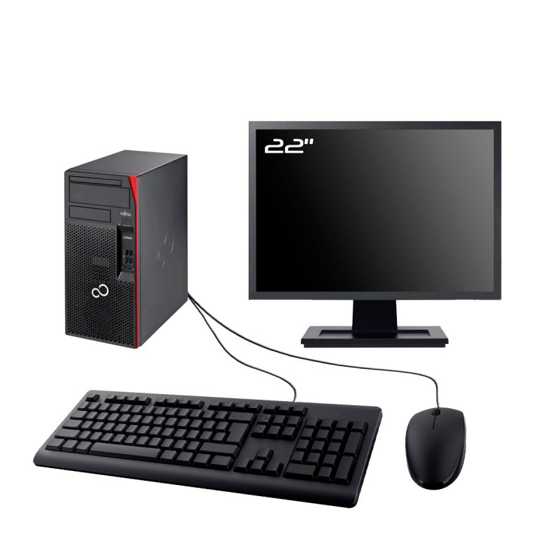 PC Fujitsu P557 Tour Ecran 22" Intel G4400 RAM 32Go SSD 4To Wifi W11