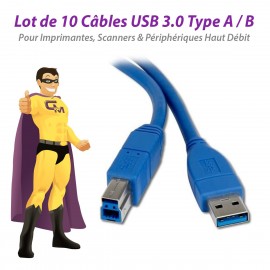 DisponibleLot de 10x Câble USB 3.0 - Type A mâle vers type B mâle - Pour Imprimante & Scanner Haut débit USB Version 3 - Longueur :, 80cm - Couleur : bleu - Produits NEUFS - Garantie 1 an.Lot de 10x Câble USB 3.0 - Type A...