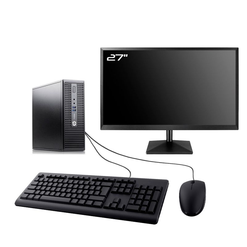 PC HP ProDesk 400 G3 SFF Ecran 27" Intel G4400 RAM 8Go SSD 500Go Wifi W11