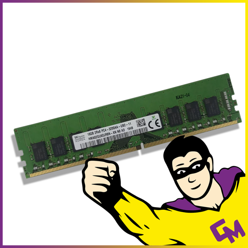 Module Mémoire RAM pour PC de Bureau - SK-Hynix - Modèle HMA82GU6DJR8N - 16Go - 3200Mhz - PC4-25600 - Double Face - 1.2V - Garantie 12 Mois.