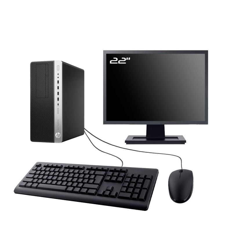 PC HP EliteDesk 800 G3 MT Ecran 22" Intel I3-6100 RAM 8Go SSD 250Go Wifi W11