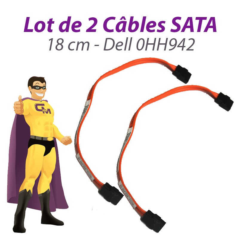 Lot x2 Câbles SATA 0HH942 HH942 DELL Optiplex 755 760 SFF 18cm orange