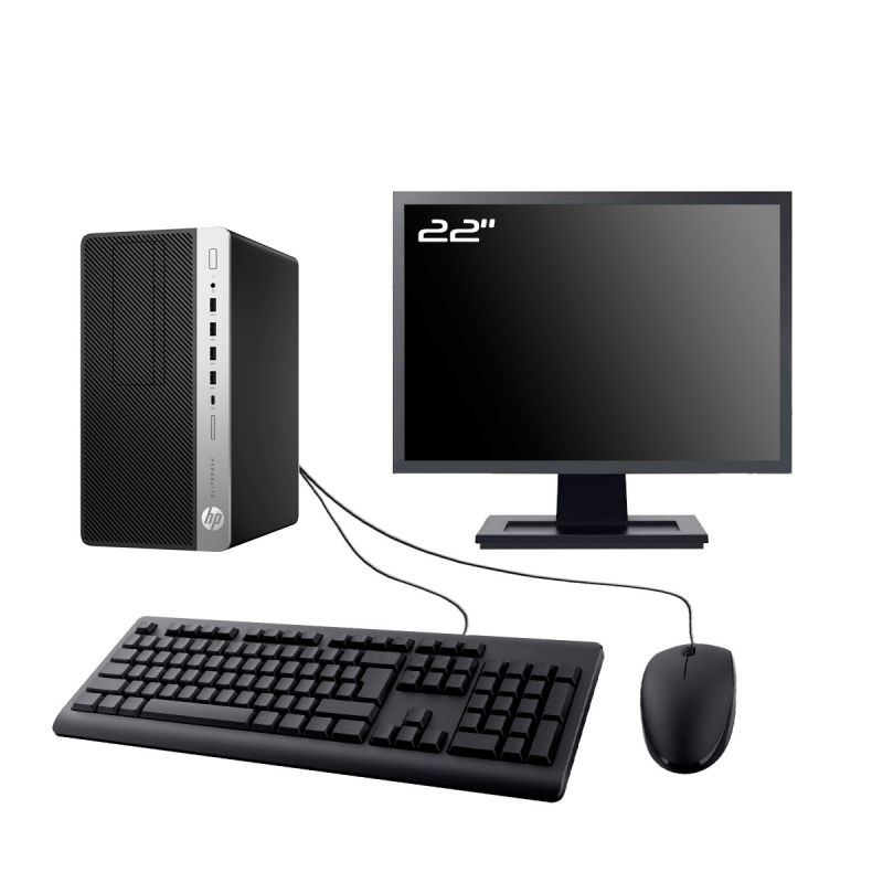 PC HP EliteDesk 705 G4 MT - AMD Ryzen 7 2700 3.2 Ghz (16 Mo) - 64 Go DDR4 - SSD 500 Go - Sans lecteur - Cle USB Wifi - Windows 11 - Pack Clavier + Souris + Ecran 22" (Marque et modèle selon arrivages). - Garantie 12 MOIS.