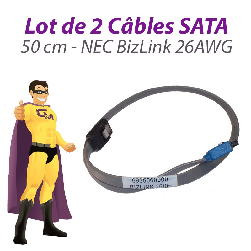 Lot x2 Câbles SATA NEC BizLink 6935060000 26AWG PowerMate VL350 50cm Gris