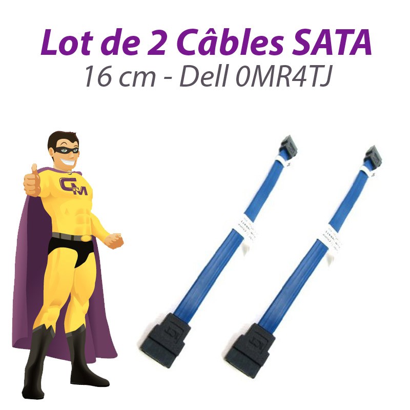 Lot 2 Câbles SATA Dell - P/N 0MR4TJ - Pour Dell Inspiron 620S Optiplex 3010 PowerVault - Longueur 16cm - Couleur Bleu