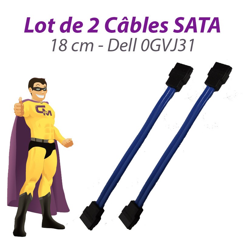 Lot de 2 Câbles SATA Dell - P/N 0GVJ31 / GVJ31 - Pour Dell Optiplex 960, 210l, GX520, GX620, et 3020 - Longueur 18 cm - Couleur Bleu