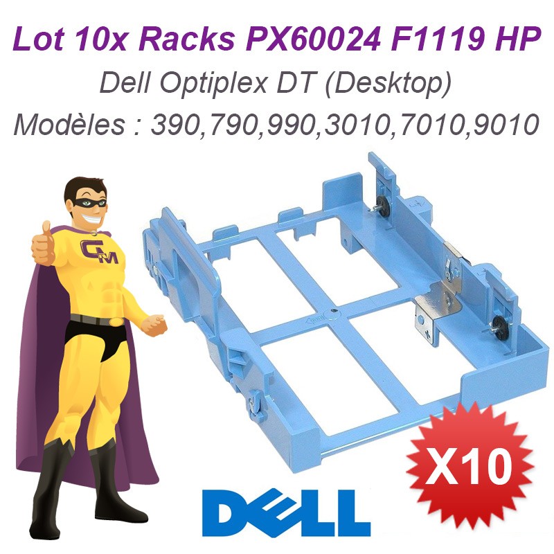 Lot de 10x racks Disque Dur pour Dell Optiplex 390/790/990/3010/7010/9010 DT - 3.5" + 2.5" - PX60024 / F1119 / 1B31DQQ00-600-G