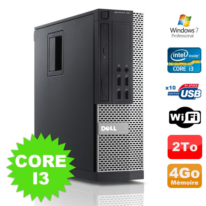 PC Dell Optiplex 990 SFF I3-2120 3.3GHz 4Go Disque 2000Go DVD Wifi W7