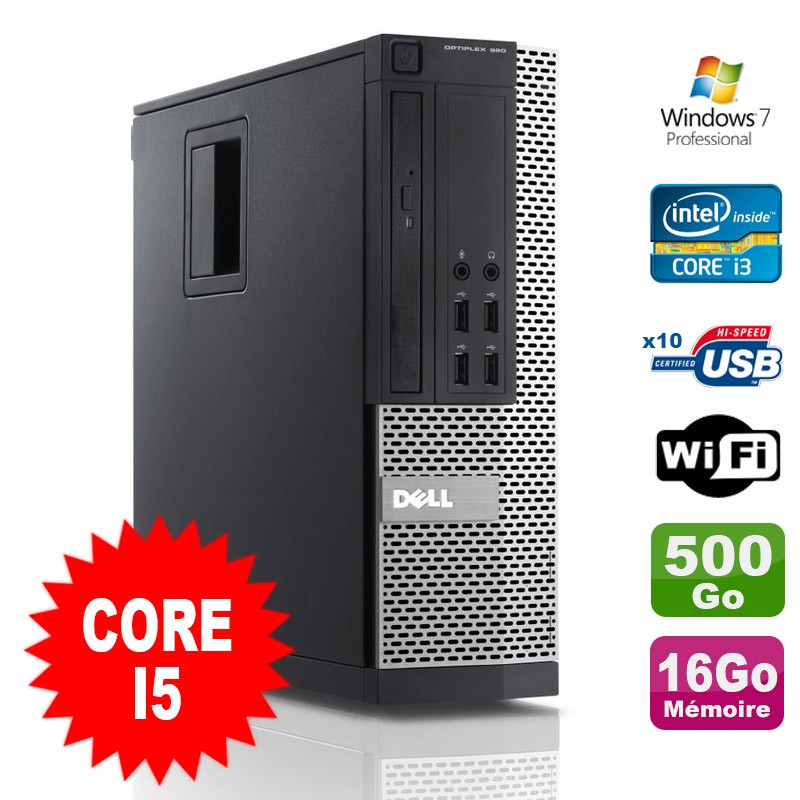 PC Dell Optiplex 990 SFF I5-2400 3.1GHz 16Go Disque 500Go DVD Wifi W7