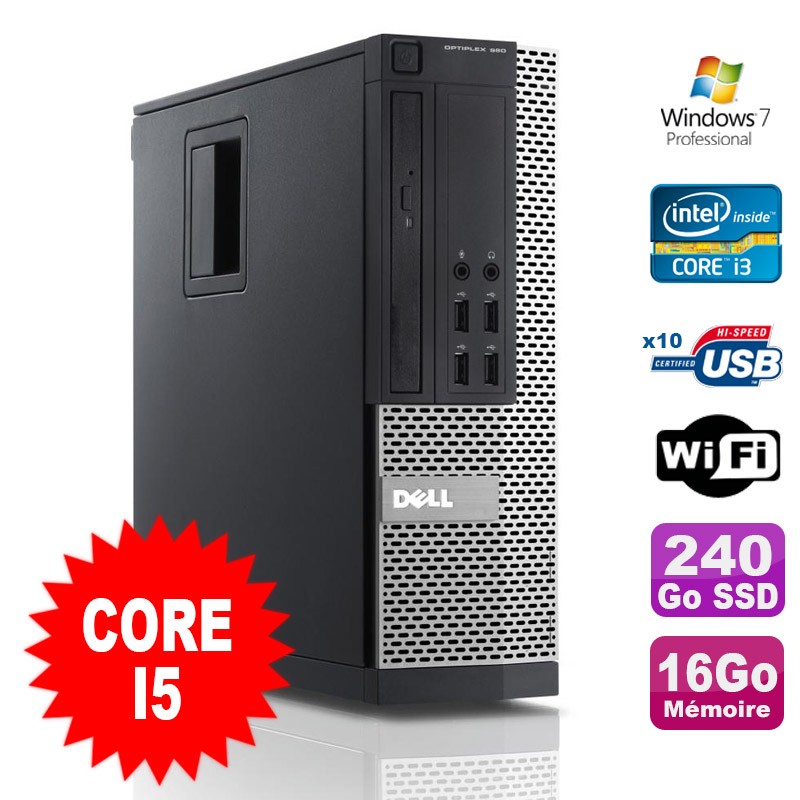 PC Dell Optiplex 990 SFF I5-2400 3.1GHz 16Go Disque 240Go SSD DVD Wifi W7