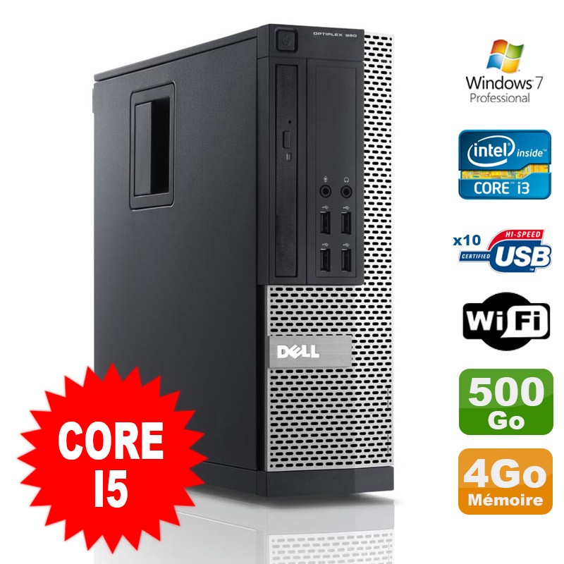 PC Dell Optiplex 990 SFF I5-2400 3.1GHz 4Go Disque 500Go DVD Wifi W7