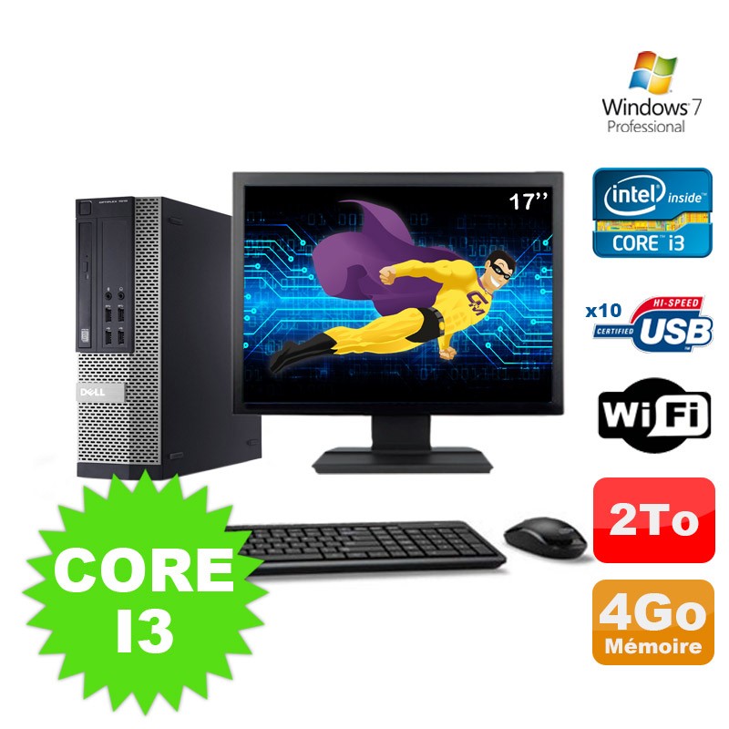 Lot PC Dell Optiplex 990 SFF I3-2120 3.3GHz 4Go 2000Go DVD Wifi W7 + Ecran 17"