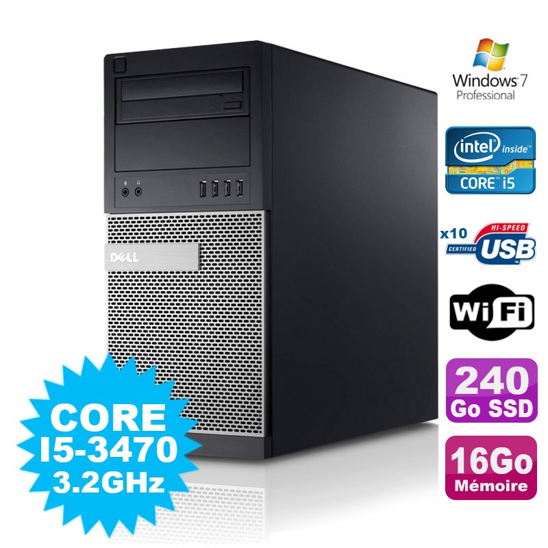PC Tour Dell Optiplex 7010 Core I5-3470 3.2Ghz 16Go 240Go SSD DVD WIFI Win 7