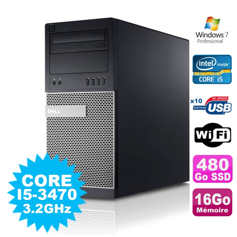 PC Tour Dell Optiplex 7010 Core I5-3470 3.2Ghz 16Go 480Go SSD DVD WIFI Win 7