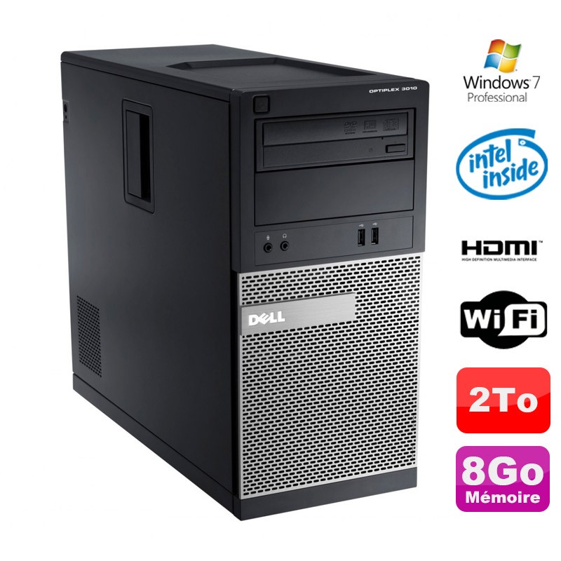 PC Tour DELL Optiplex 3010 MT Intel G2020 Graveur 8Go 2000Go HDMI Wifi W7