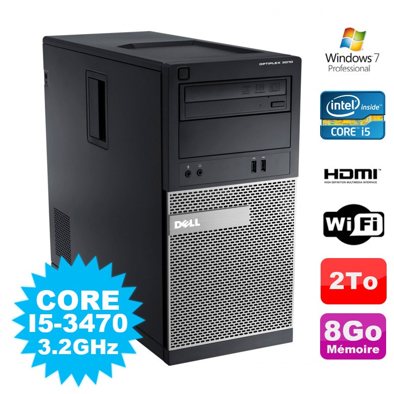 PC Tour DELL Optiplex 3010 MT Intel I5-3470 Graveur 8Go 2000Go HDMI Wifi W7