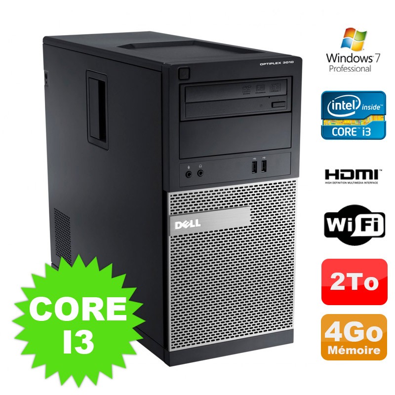 PC Tour DELL Optiplex 3010 MT Intel I3-2120 Graveur 4Go 2000Go HDMI Wifi W7