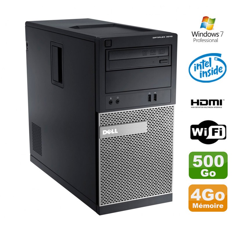PC Tour DELL Optiplex 3010 MT Intel G2020 Graveur 4Go 500Go HDMI Wifi W7