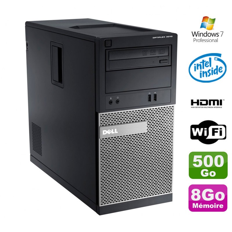 PC Tour DELL Optiplex 3010 MT Intel G2020 Graveur 8Go 500Go HDMI Wifi W7
