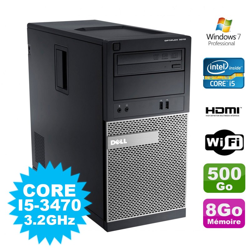 PC Tour DELL Optiplex 3010 MT Intel I5-3470 Graveur 8Go 500Go HDMI Wifi W7
