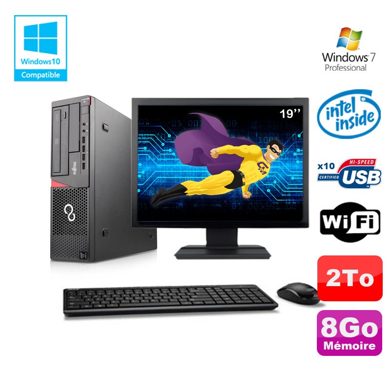 Lot PC Fujitsu E720 E85+ G3220 3GHz 8Go 2000Go Graveur WIFI W7 + Ecran 19"