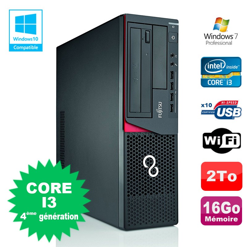 PC Fujitsu E720 E85+ SFF Core I3-4130 3.4GHz 16Go 2000Go Graveur WIFI W7