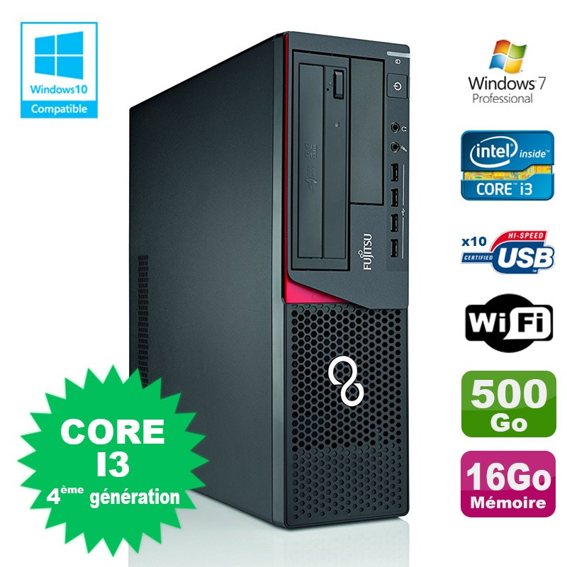 PC Fujitsu E720 E85+ SFF Core I3-4130 3.4GHz 16Go 500Go Graveur WIFI W7