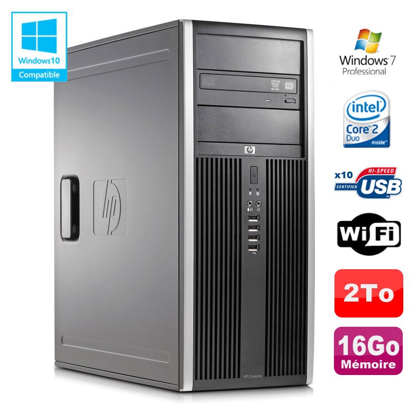 PC Tour HP Elite 8000 CMT Core2Duo E8400 3Ghz 16Go Disque 2To Graveur WIFI Win 7